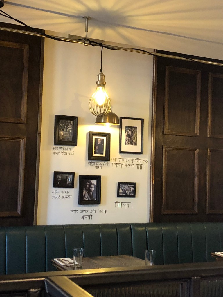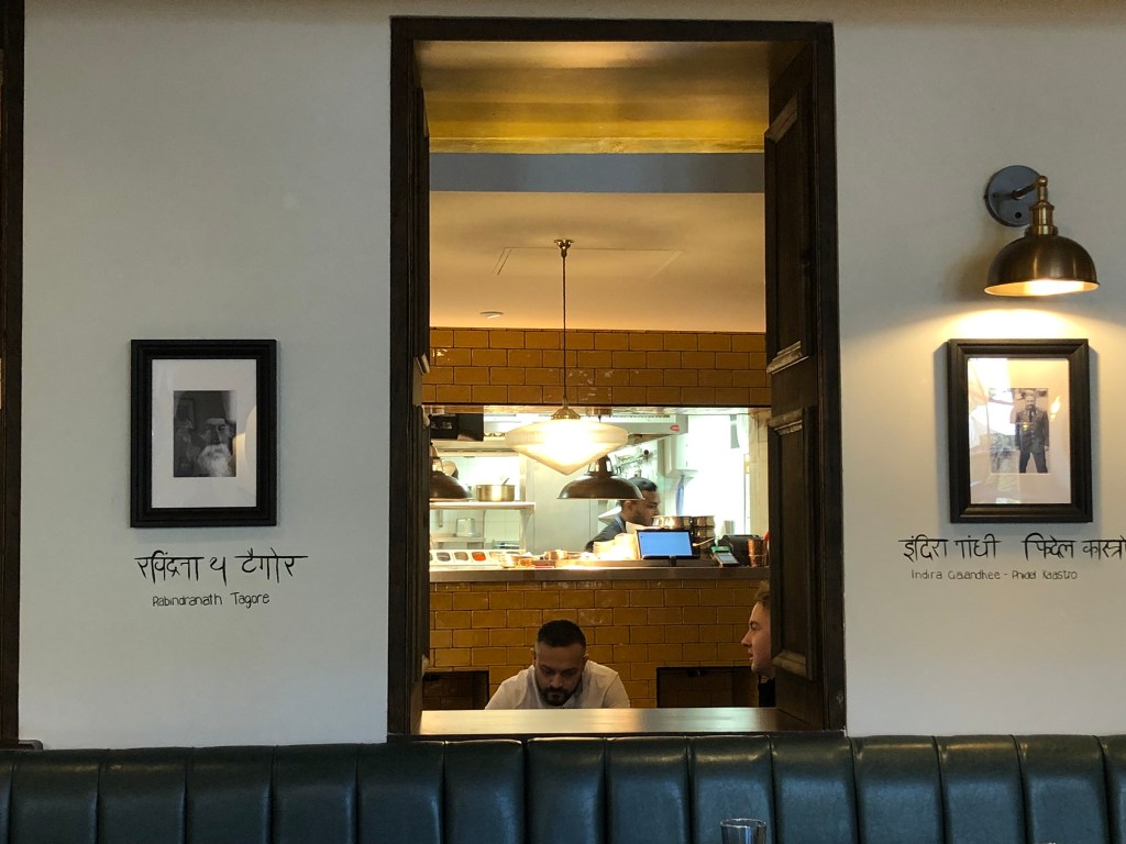 The restaurant is right in the middle of the main shopping street in Bath, in a little complex between Milsom Street and Broad Street. It is light and airy with lots of cream walls and dark wood, actually quite sophisticated for a restaurant that claims to sell street food. A nice touch though is the discreet black and white photos of famous Indian people, including an intriguing one of Indira Gandhi with Fidel Castro.