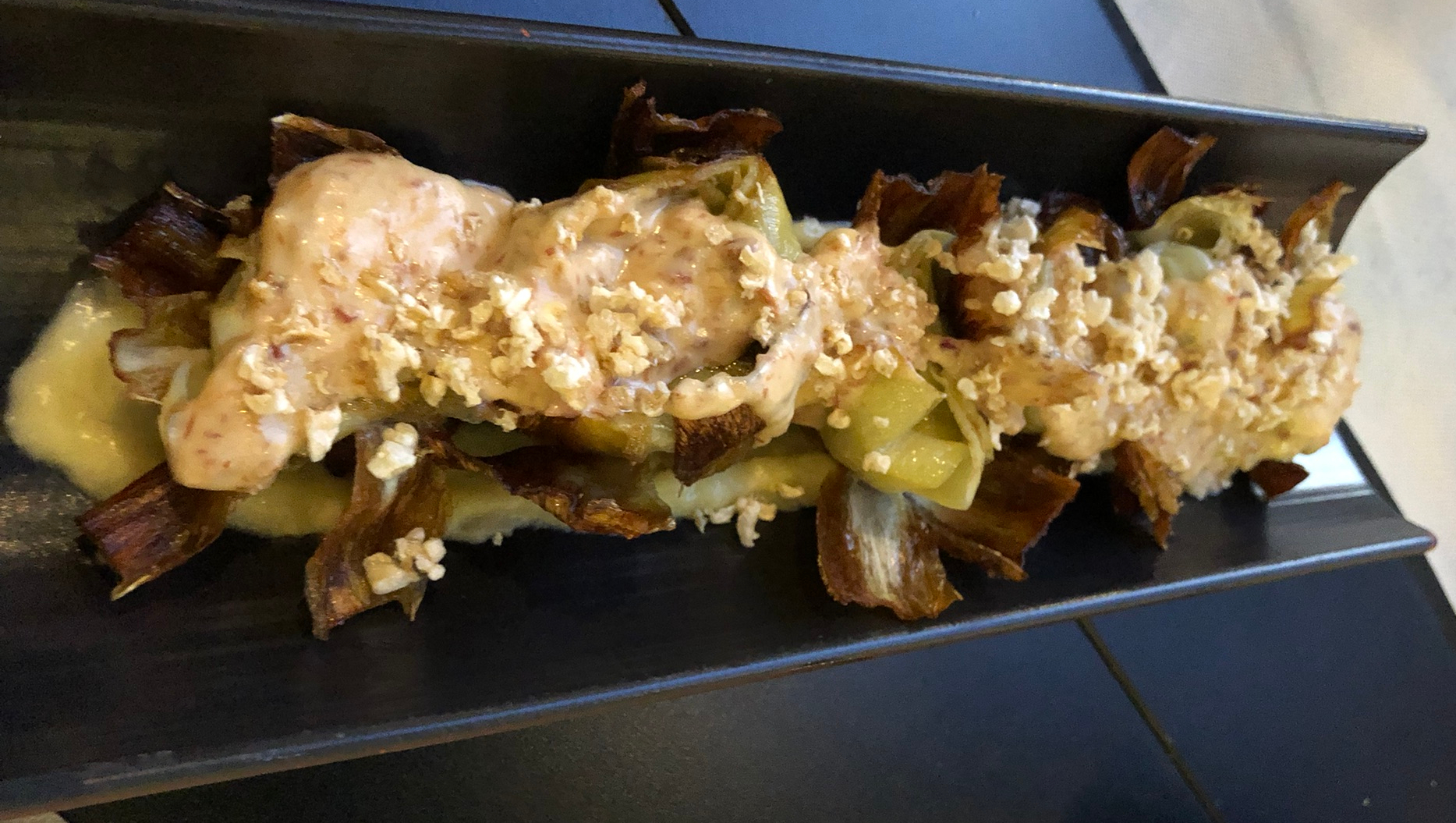 The baby artichokes with a creamy ham sauce were superb, with tiny thin and crispy pieces of crackling.