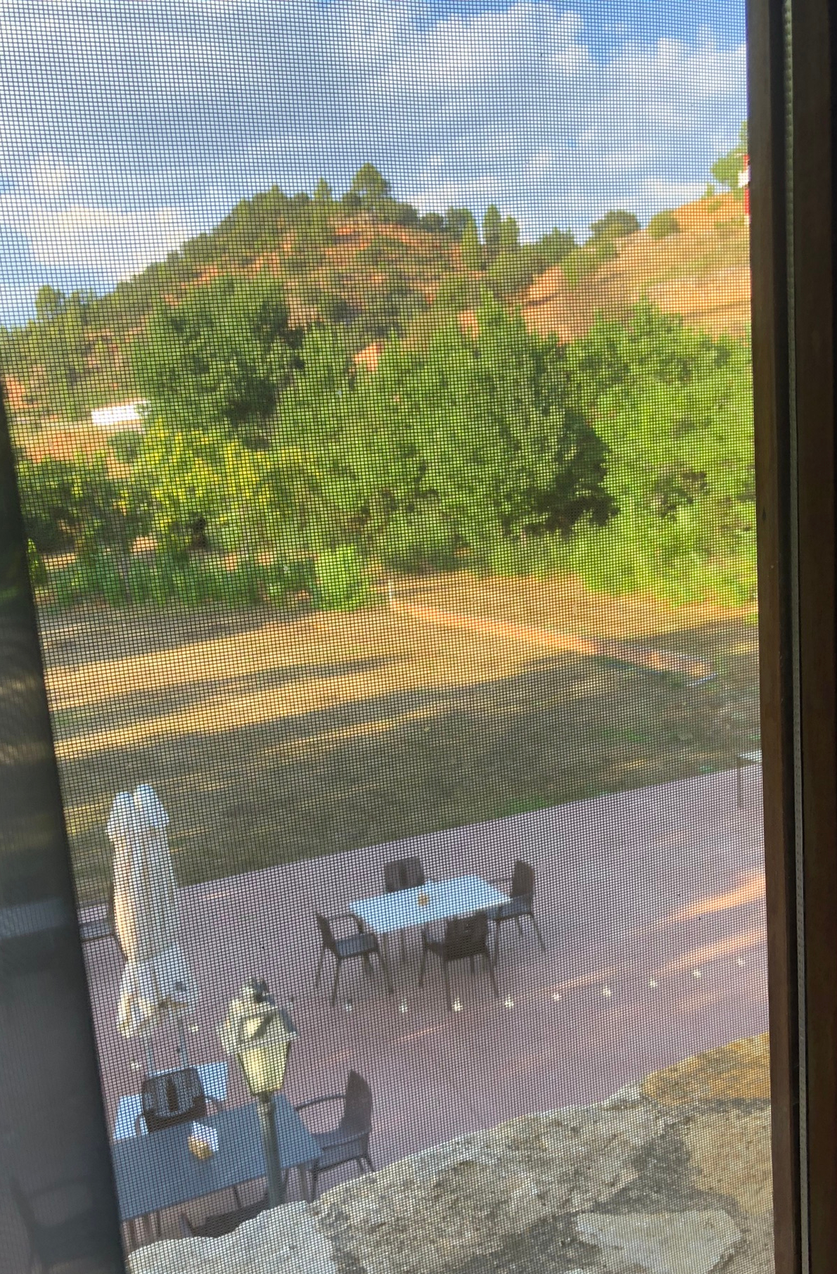 There is a simple and pretty outside terrace where you can brave the flies and have a drink or a meal. We had a lovely drink outside before supper but despite using our best Rafael Nadal forehand swings every few seconds the flies continued to throw themselves at us so we retreated indoors for supper.