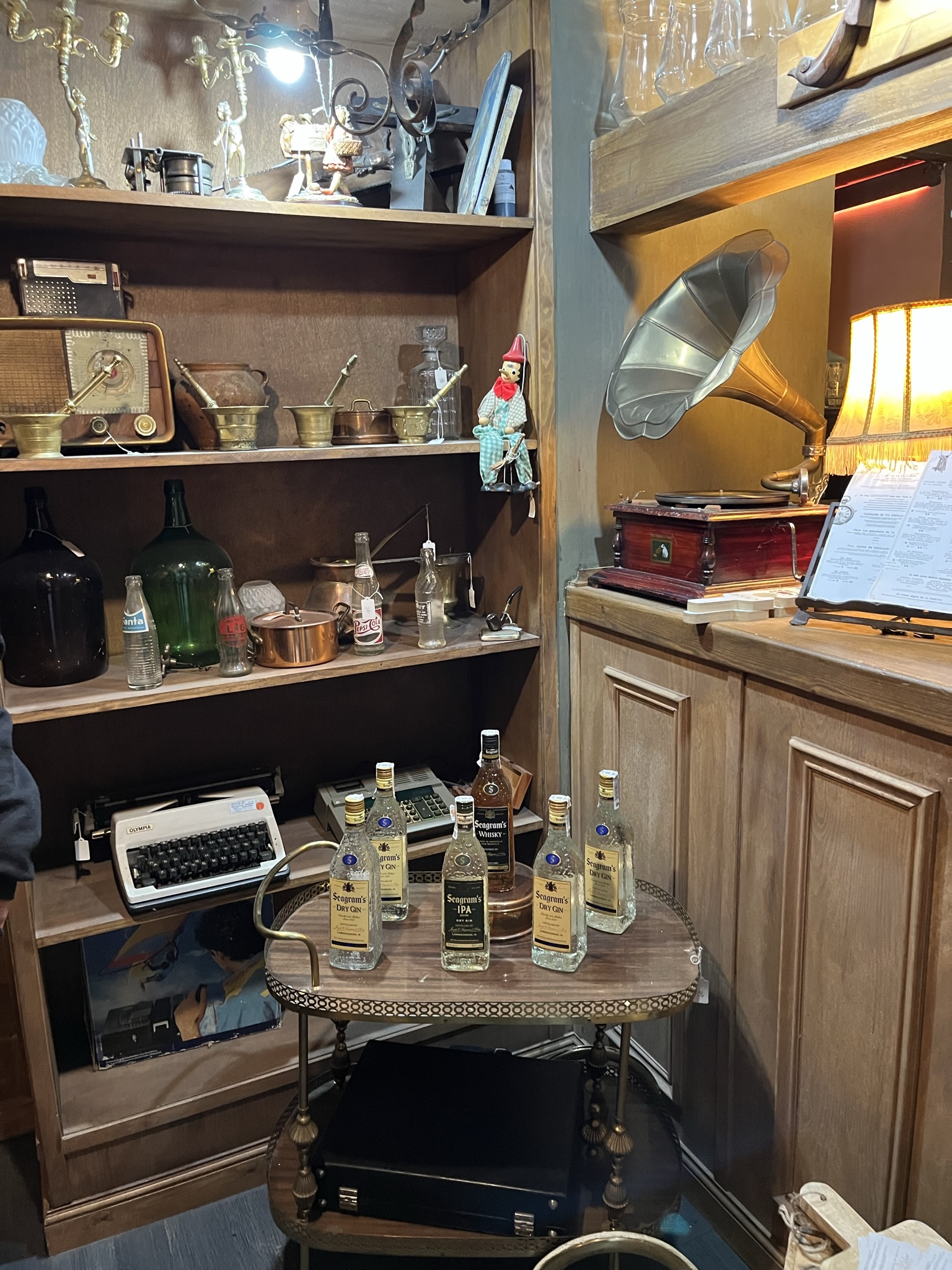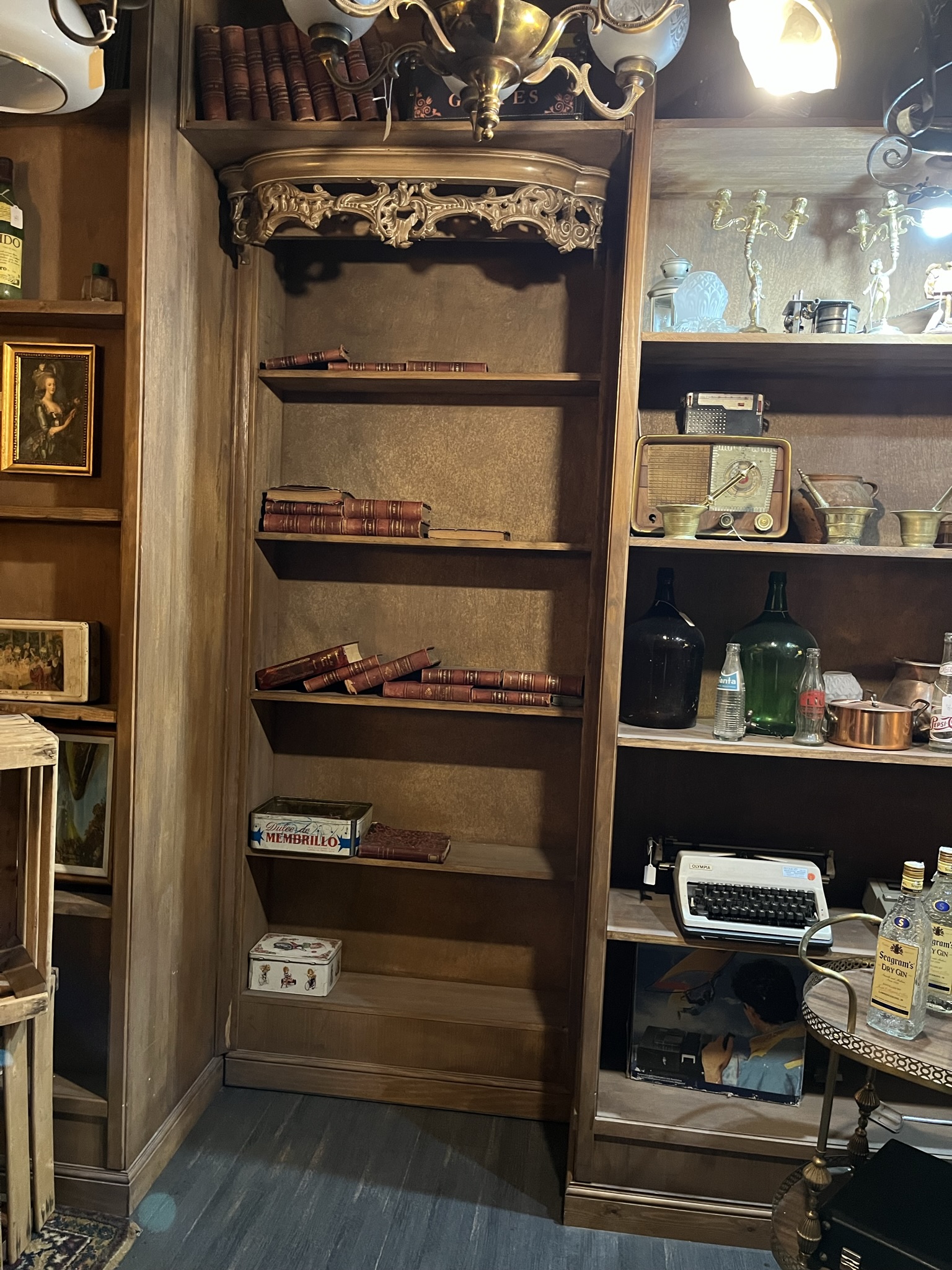 You go in and you are in a tiny vintage shop, circa 1930s with nicknacks (mostly) from that era. Someone has had fun creating this.