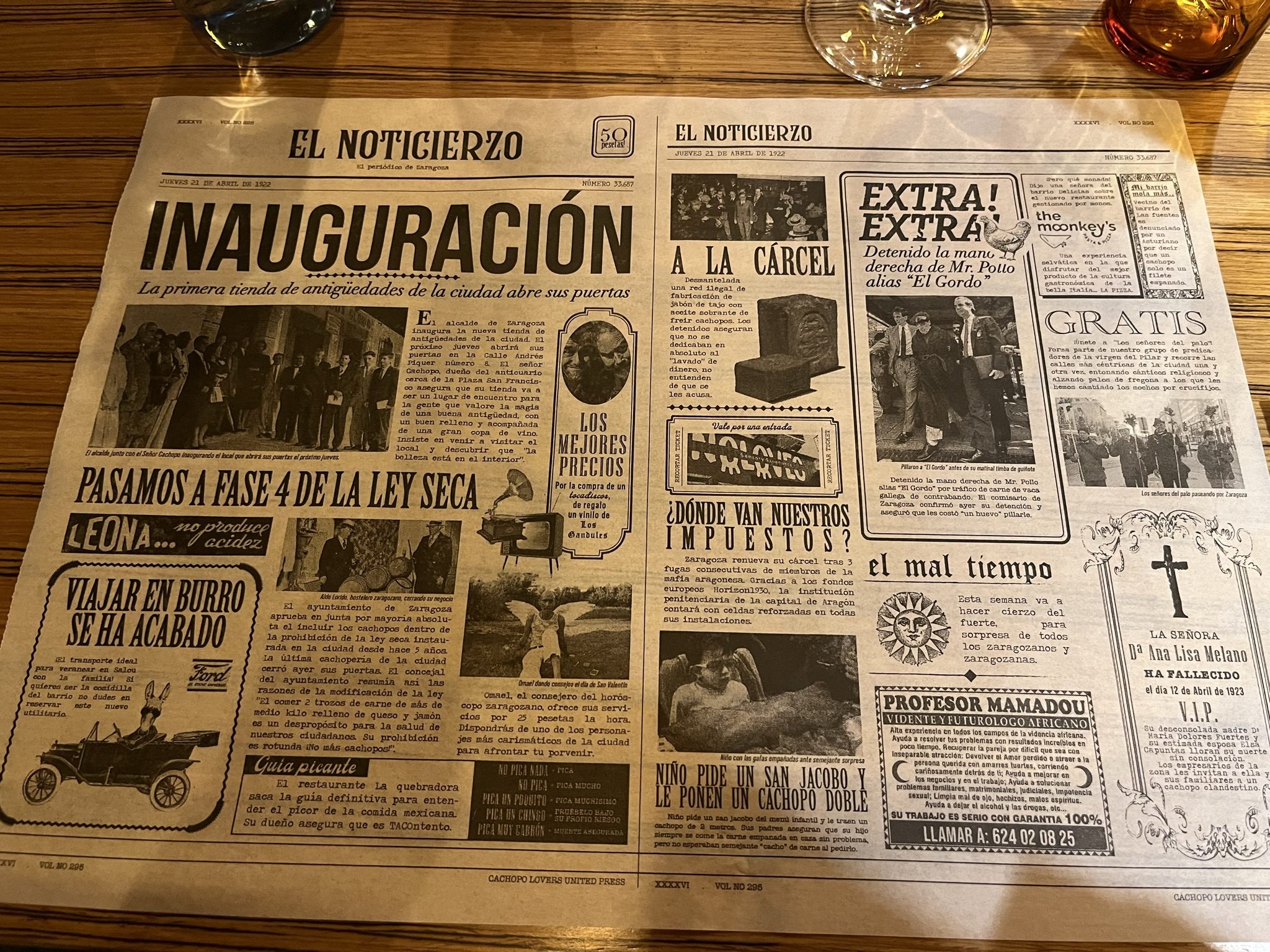 So yes, a fantastic time was had by all and you stagger out from the sliding bookcase at the end of the meal very full and with a smile on your face because it’s all been done so well. I am always saying what a foodie town Zaragoza is – it really is – so if you plan a few days there to test my statement, do build in an evening here. It may be more theatre than foodie, but it’s worth it for the fun. Just make sure you go with really good friends, like we did.