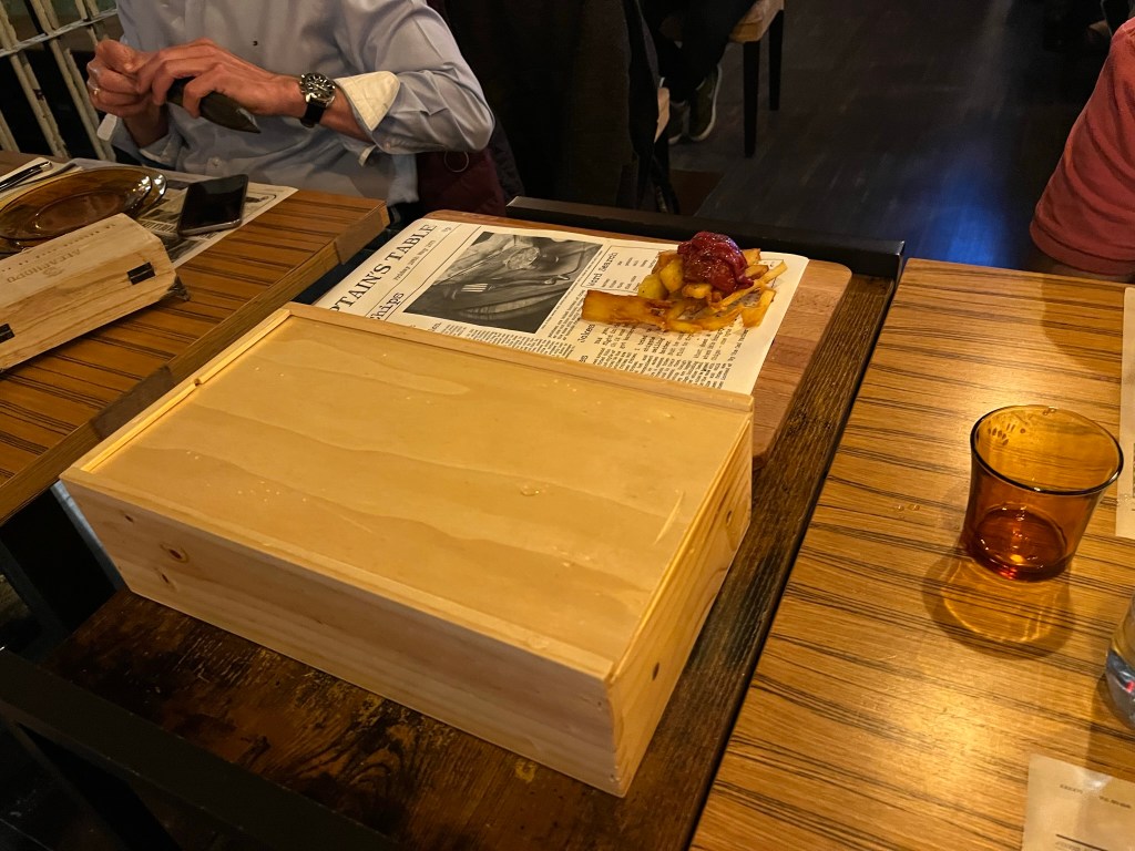 The theatre continues when they bring the food – some come to the table inside a wooden box (not sure if this was a slightly morbid gangster reference) ……
