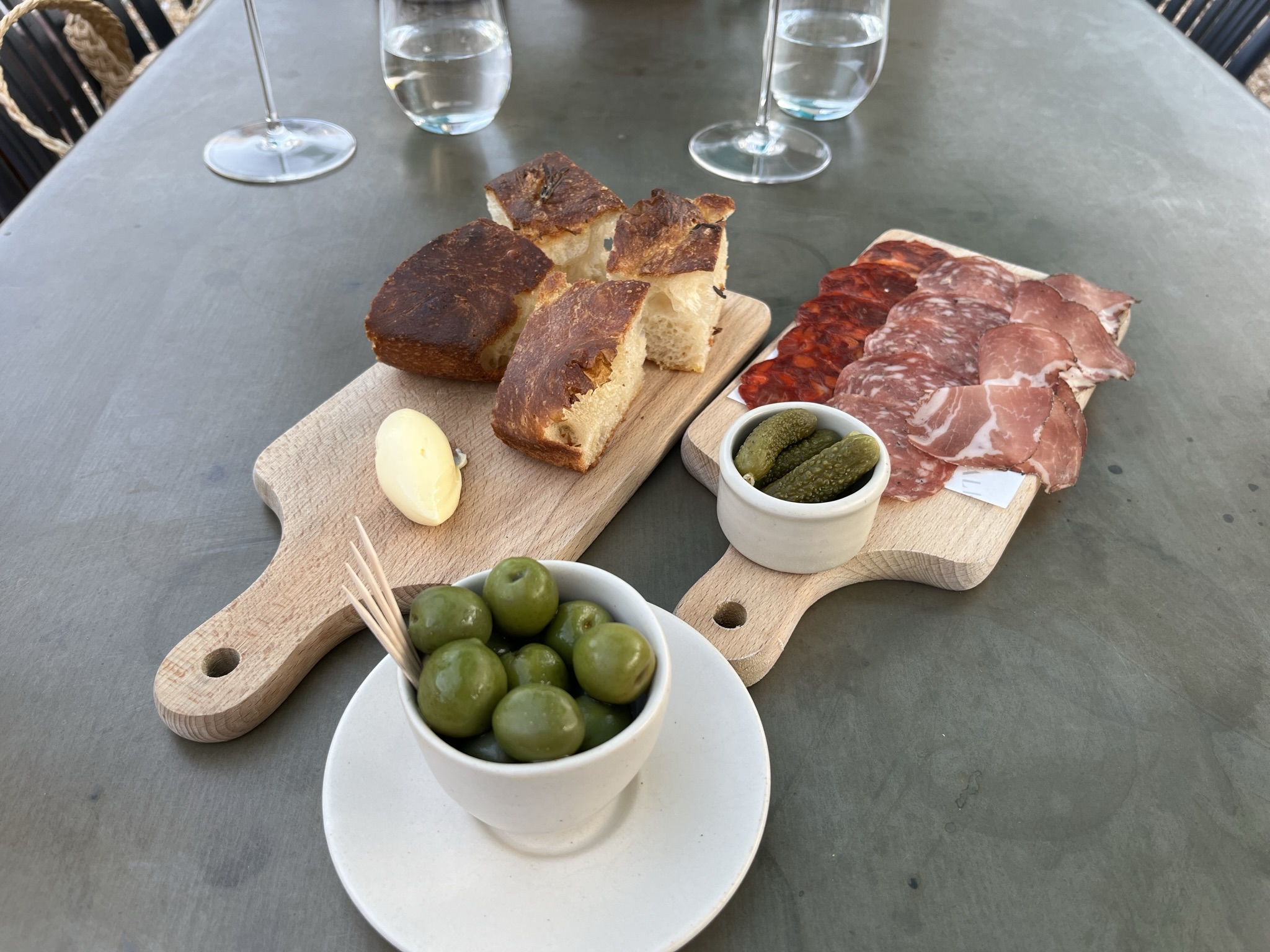 OK, lobbying over…. We started with a few nibbles – some charcuterie, some delicious focaccia and a bowl of lovely plump olives. I tried going all Rubiyat of Omar Khayyam but “a loaf of bread, a platter of charcuterie, some lumps of focaccia and thou” just didn’t scan so I gave up.