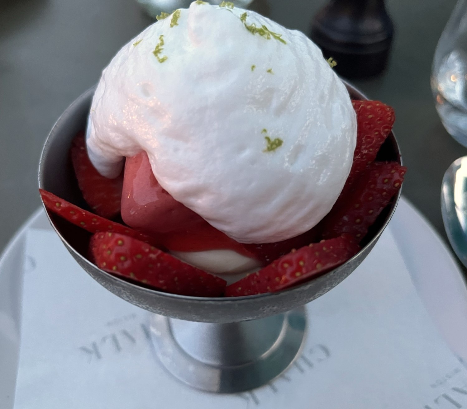 We all chose very light puddings – home made ice cream, and strawberries with coconut cream and white chocolate, what’s not to love there – then came hot drinks. The other two had coffee, but I prefer a tisane so I cheerfully chose English peppermint from the two “fresh herbal infusions” listed. I felt a bit silly asking, but I checked nonetheless “so FRESH means it’s actual mint leaves in hot water?”. “Oh yes,” came the answer. “Excellent,” I said, turning to the others and starting a reinforcing conversation about how delicious fresh mint tea is. The waitress began to look worried and said “I mean, they’re in tea bags but it’s fresh mint.”