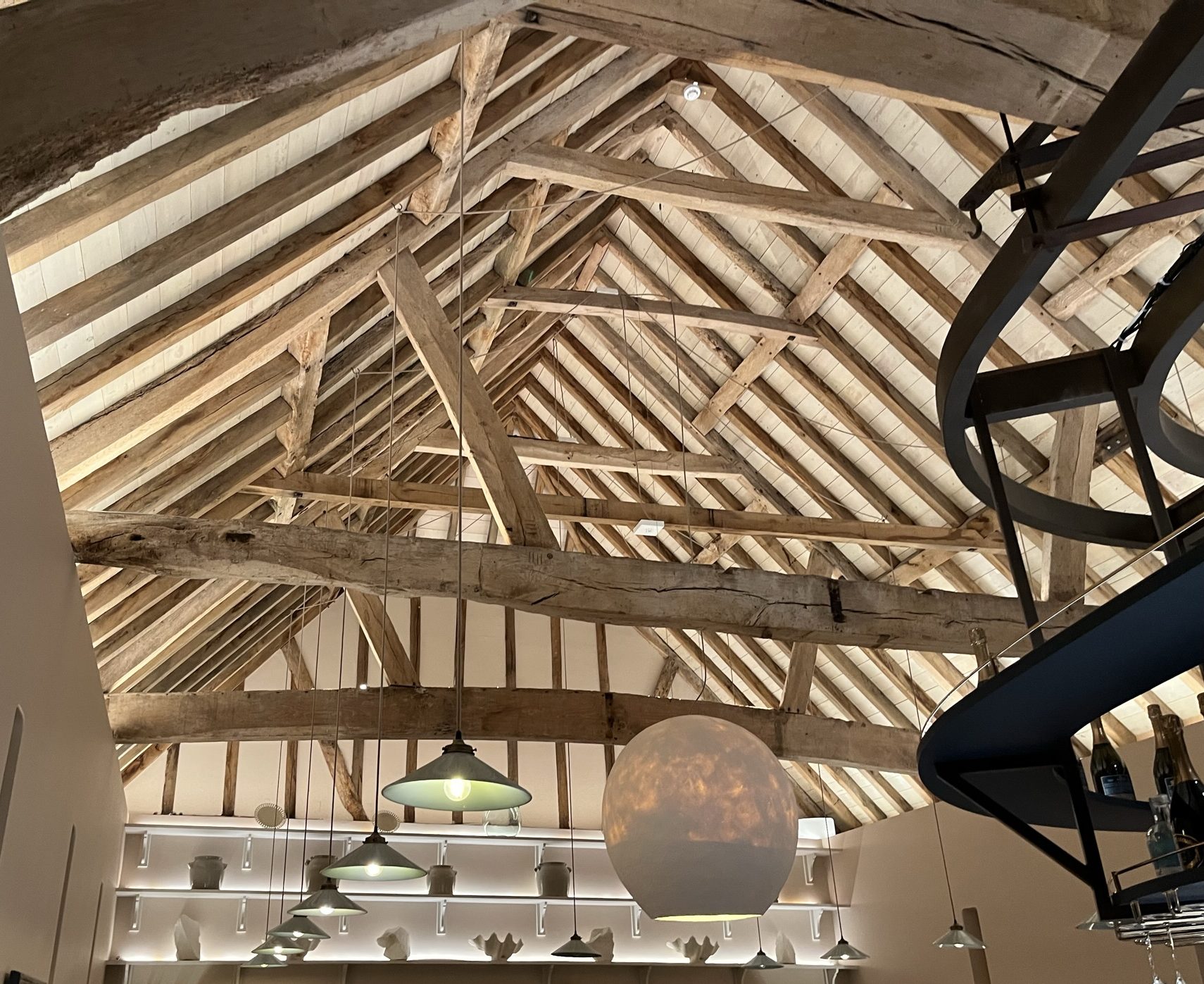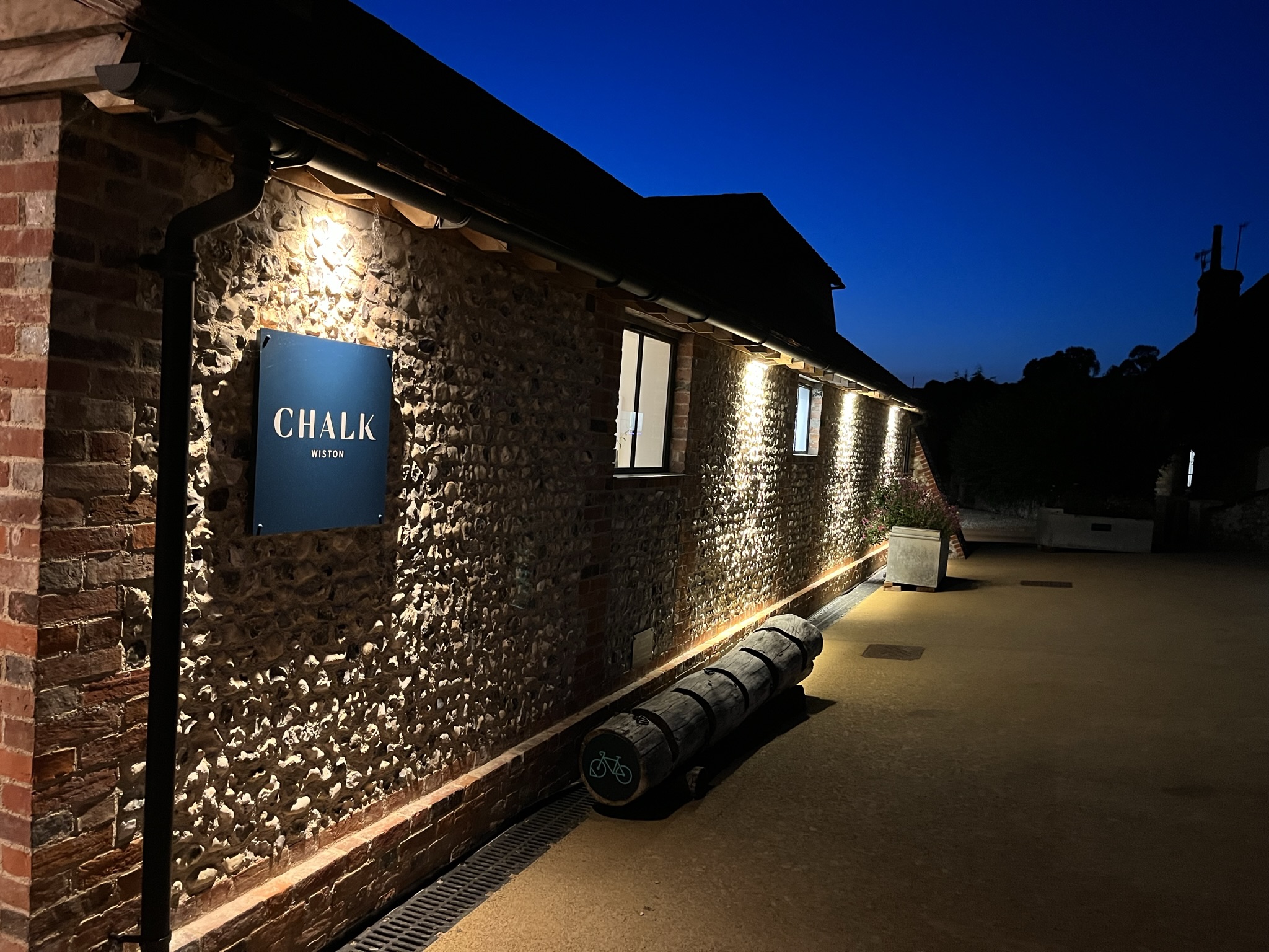 The careful and respectful restoration of old farm buildings to create the restaurant was recognised in 2022 with a Sussex Heritage Trust award, and the beautiful Sussex flint walls are highlighted once night falls by discreet downlighters.