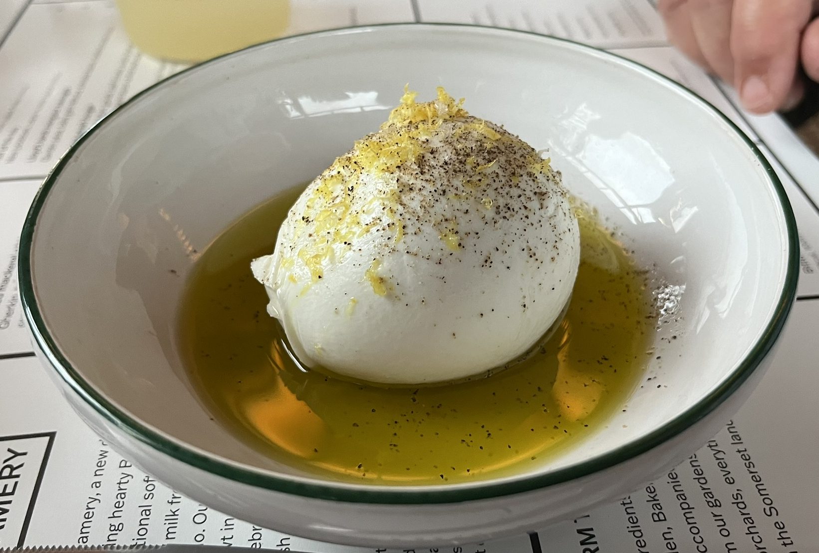 The puddings include buffalo milk gelato, which sounds fascinating but actually just tastes like ice cream, a selection of sorbets, and the intriguingly-named “hangop”, which is a Dutch / South African dish in which yoghourt is hung up in a cloth and allowed to drain, and here at the Creamery is whipped and served with lovely Somerset strawberries.