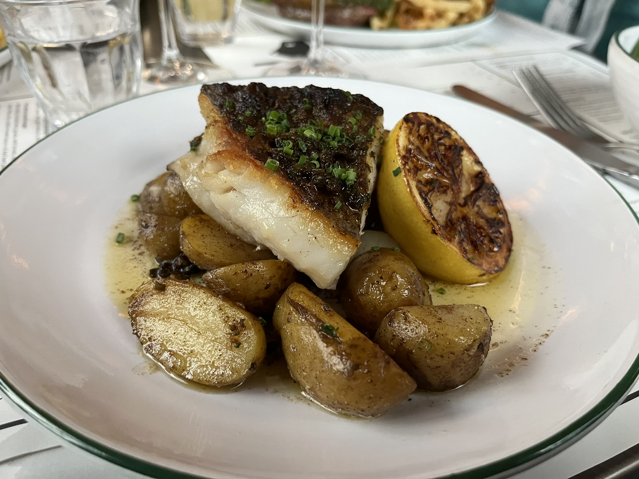 The fish option when I had it was pollock, and I have to say it was correctly cooked and was probably the best dish consumed that evening:
